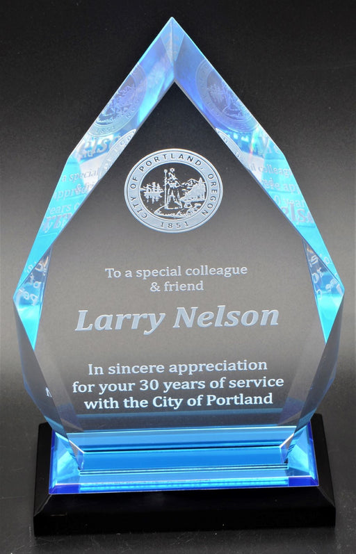 Blue Jewel Mirage Acrylic Award. (4 Sizes) Engraving IS INCLUDED in the price. Artwork layout file will be emailed to you for approval before wor...