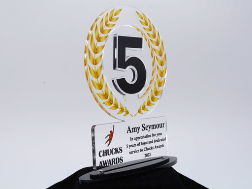 Employee Anniversary 5 Year Award. 8.6 inch Height. Full Customized Color printing IS INCLUDED in the price. Please email us your text, logo, an...