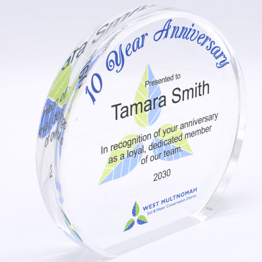 Clear Round Acrylic Award, Free Standing. (3 Sizes) Engraving or Full Color Printing IS INCLUDED in the price. Artwork layout file will be emaile...