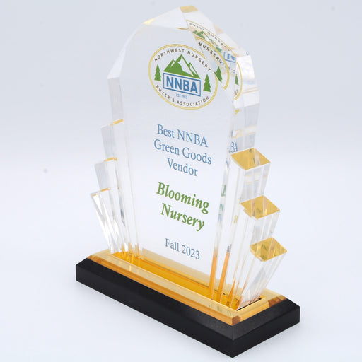 Gold Faceted Impress Acrylic Award.(2 Sizes) Engraving or Full Color Printing IS INCLUDED in the price. Artwork layout file will be emailed to yo...