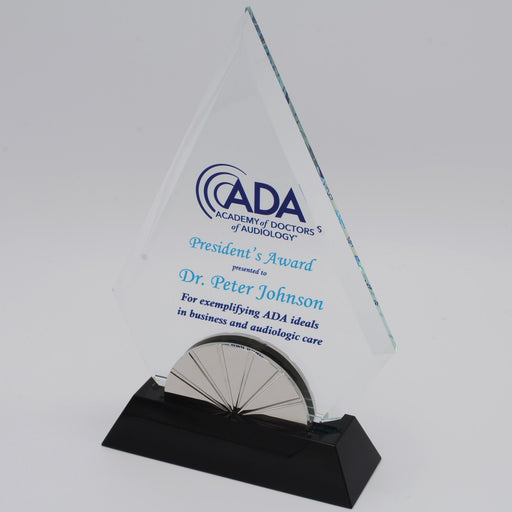 Diamond Shaped Accent Glass Award. Blue or silver accent glass mounted on a blue and black glass base. Silver has a black base only. The glass ...