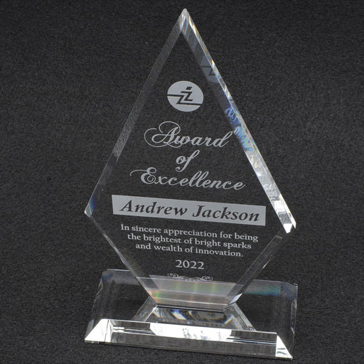 Crystal Diamond Award using Optical Crystal. (3 Sizes). Packaged in Deluxe Velour Lined Presentation Box. Deep Etch Sand Engraving IS INCLUDED in t...