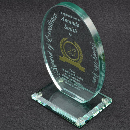 Jade Glass Oval Award on Base. 3 Sizes. No presentation box. Deep Etch Sand Engraving IS INCLUDED in the price. Please email us your personali...