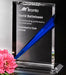 Emerald green or Indigo blue Danbury Rectangle Crystal Award. The colored crystal makes a dramatic appearance.