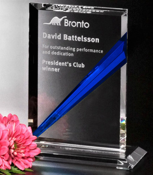 • Emerald green or Indigo blue Danbury Rectangle Crystal Award