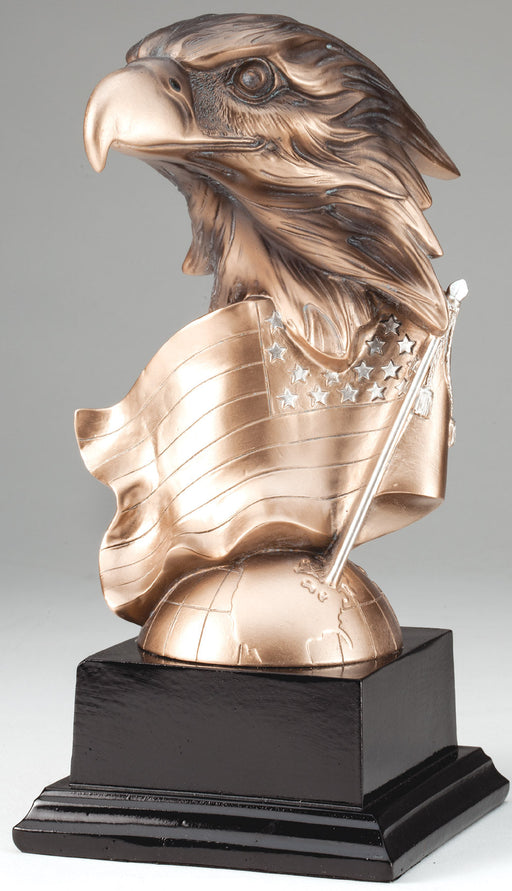 Bronze Eagle Resin Trophy with Flag on Base. (3 Sizes). Engraving plate is included in the price and will be mounted on the base. Please list e...