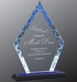 Diamond Shaped Accent Glass Award. Blue or silver accent glass mounted on a blue and black glass base. Silver has a black base only.