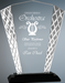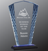 Fan Shaped Accent Glass Award. Blue or silver accent glass mounted on a blue and black glass base. Silver is just a black base.