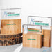 The Arbuste Award is where modern elegance seamlessly merges with natural warmth. This distinctive rectilinear block made out of wood is combined with the sleek transparency of acrylic, creating a symbol of achievement that beautifully balances contemporary design and traditional craftsmanship. Black Gift Box included. (2 Sizes). Color Printing IS INCLUDED in the price. Please email us your text, logo, and any artwork preferences or list them in the text boxes shown, and we will respond with an artwork file for approval before work begins. Contact us for a volume discount.
