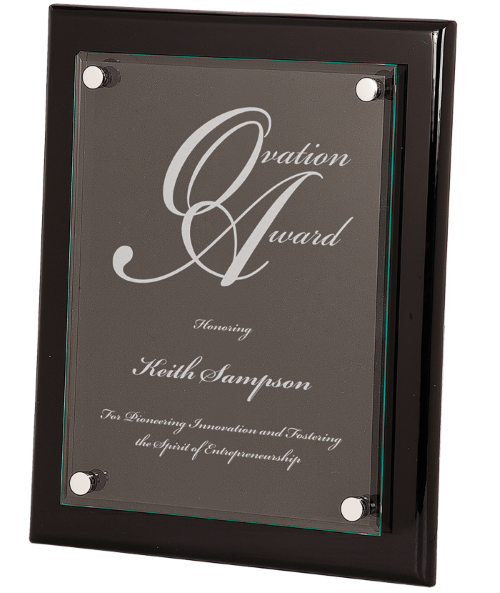 Rosewood Piano Finish Floating Glass Plaque. (3 Sizes) Engraving IS INCLUDED in the price. Artwork layout file will be emailed to you for approval...