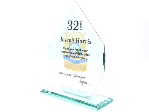 Police Glass Plaque with Badge. Full color printed for amazing color. Horizontal Self-Standing with pin back and beveled edges. Digital Color Pr...
