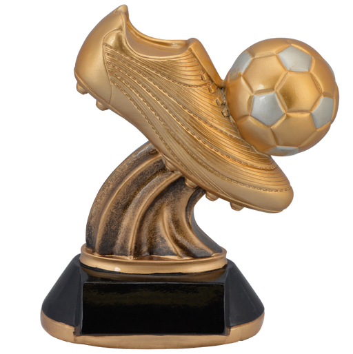 Golden Cleat Soccer Trophy Resin. Gold Brushed Metal Engraving Plate IS INCLUDED in the price. Please enter your personalization details / verbi...