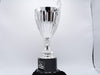 Silver Metal Cup Trophy with Handles on Weighted Plastic Base. (5 Sizes). Cup is metal, base and stem are plastic.