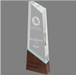 Peak Sierra Glass Award with Walnut Base. (2 Sizes). Engraving or printing can be on the walnut base and glass if desired. Includes lined presentation box. Contact us for volume pricing qty>4.