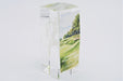 Golf 3D Figure Male in Crystal Cube Award with full color printing background. 4.5" X 2". Packaged in Lined Presentation Box.